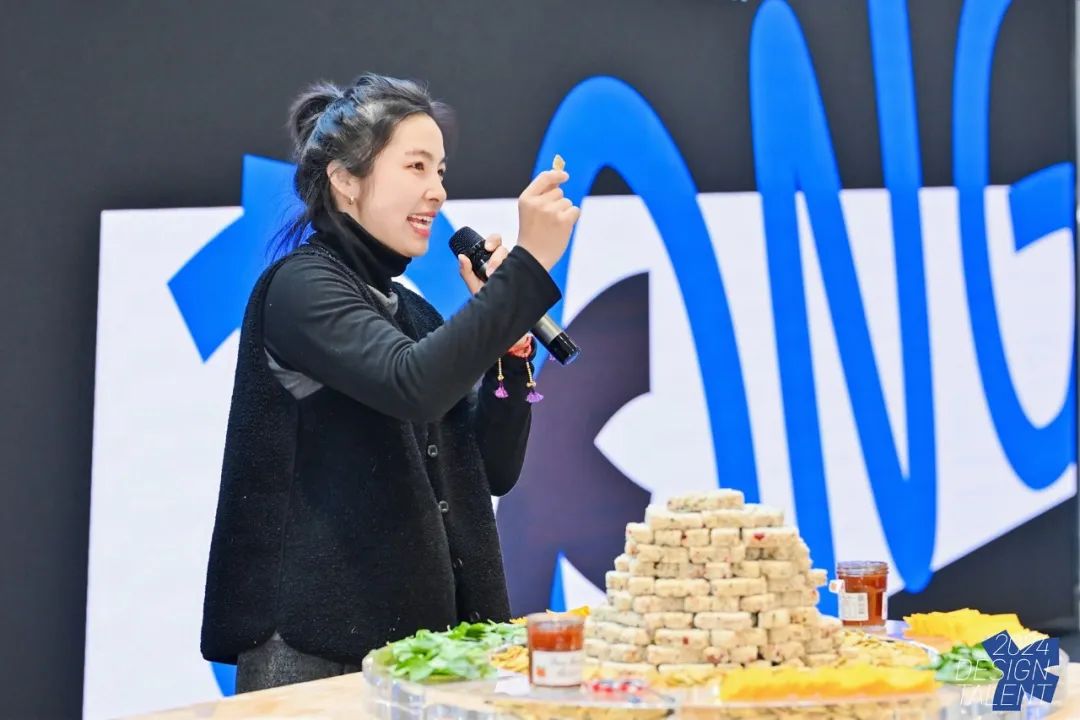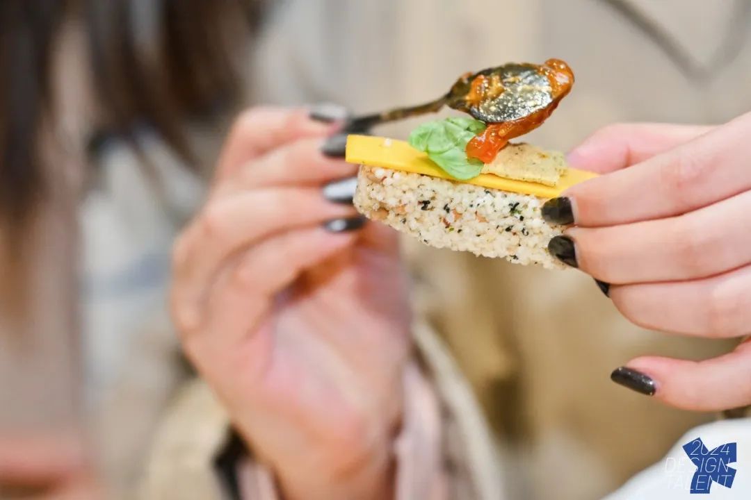 现场观众同时也品尝到由狄倩伊设计的小米糖、海苔锅巴,提出食物搭配畅想,并由胡方老师设计展陈的温岭小米糖canapé,场面一度火爆。