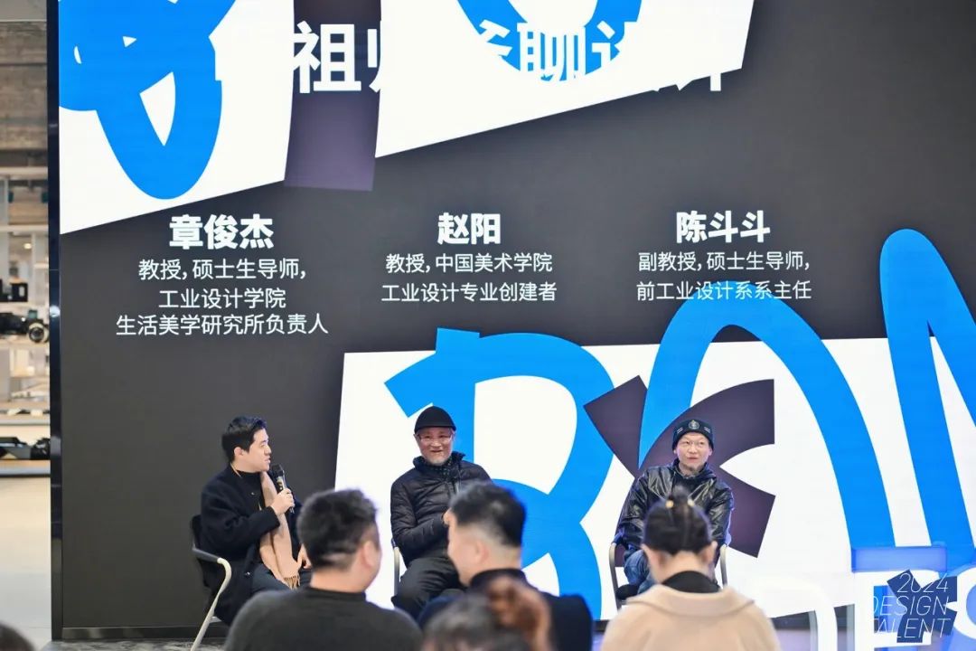 本次活动非常荣幸地邀请到工业设计专业开拓者赵阳教授、前工业设计系主任陈斗斗副教授、现生活美学负责人章俊杰,带来薪火相传板块的对谈之一“听祖师爷聊设计”,并与观众互动。