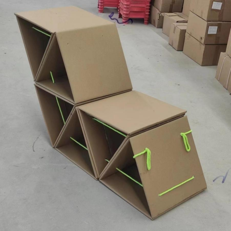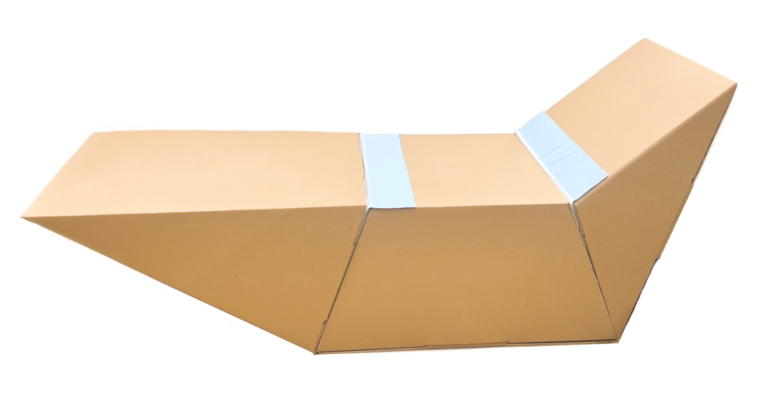 作品由三棱柱形纸板模块插接组成,模块之间由纸圆管穿插连接固定,模块内部用三角形纸板支架增加强度与承重。该椅不仅轻便便携易组装,还能根据需求改变椅面,椅背的长度,自行组装成躺椅,脚凳…满足家具的个性化需求,拼装简单,轻便易运输,材料环保可持续。