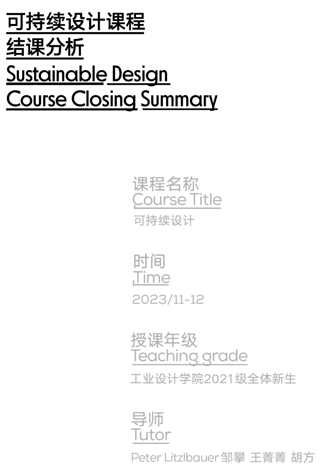 历经六周时间的可持续设计课程,从调研学习到概念设想,从小比例模型制作到最终成品。每一步的过程都会遇到问题与挑战,但也正是在这样的过程中,我们不断地对产品进行尝试、推敲和打磨,逐渐塑造出令人满意的产品。特别要感谢利兹堡教授,他的严谨、博学和耐心为我们提供了宝贵的指导,深刻地教会我们设计中实践探索和经验积累的重要性。每一次尝试都是经验的探索,每一个问题都是思维的锻炼。正是这种不断探索和经验积累,使我们的作品在不断迭代中逐渐趋于完善。